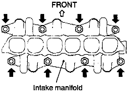 Tighten the intake manifold mounting nuts one bank after the other by the following procedure.