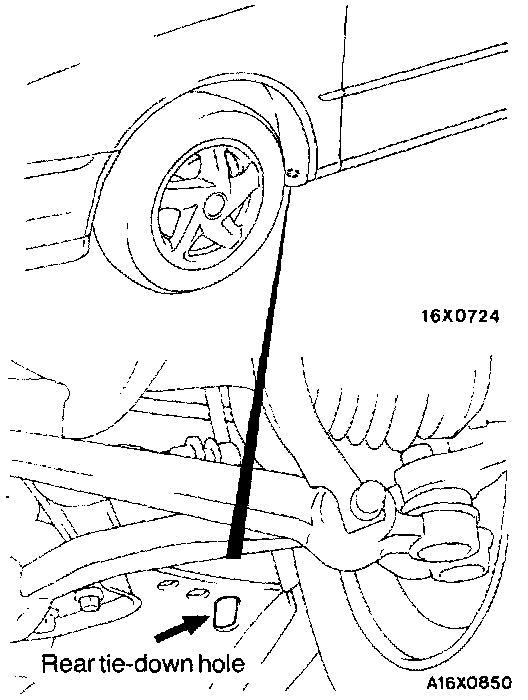 4. Attach a chain or wire to the rear tie-down holes. Make sure the end of the wire or chain is secured firmly.