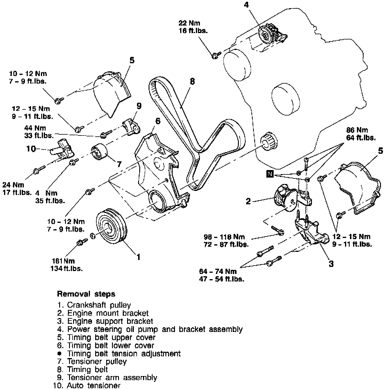 Caution Since the camshaft can turn by the reaction of the valve springs be careful not to get your fingers caught between the sprocket and timing belt.