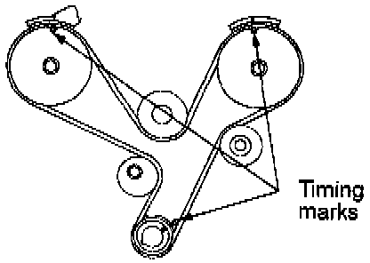 (1) Turn the crankshaft a 1/4 turn counterclockwise, and then turn it clockwise to the position where the timing marks are aligned.