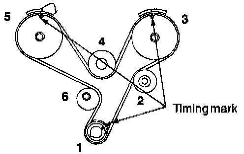 (2) Chalk an arrow indicating the direction of rotation on the back of the timing belt for further reuse.