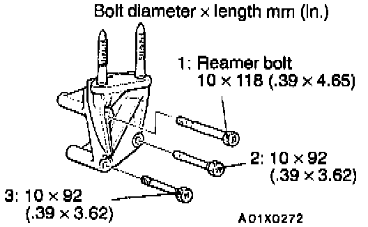 Since the engine support bracket mounting bolts differ in size depending on their locations, install them in the numbered sequence shown in the figure.