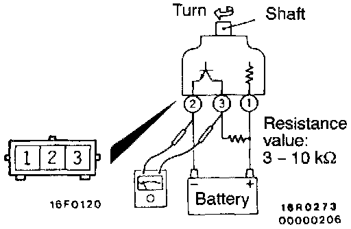 2. Turn the shaft of the vehicle speed sensor and check that there is voltage between terminals 2 - 3. (1 turn = 8 pulses)