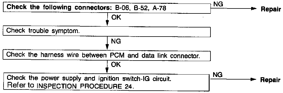 - Open circuit between PCM and data link connector