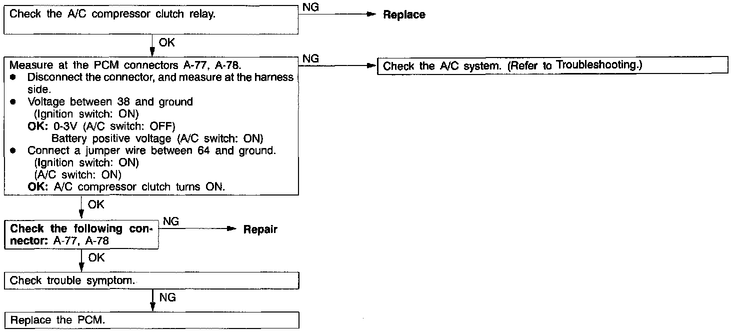 - When an A/C ON signal is input to the PCM, the PCM carries out control of the idle air control motor, and also operates the A/C compressor magnetic clutch.