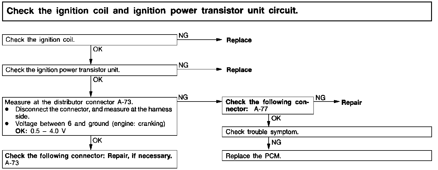 Check the ignition coil and ignition power transistor unit circuit.