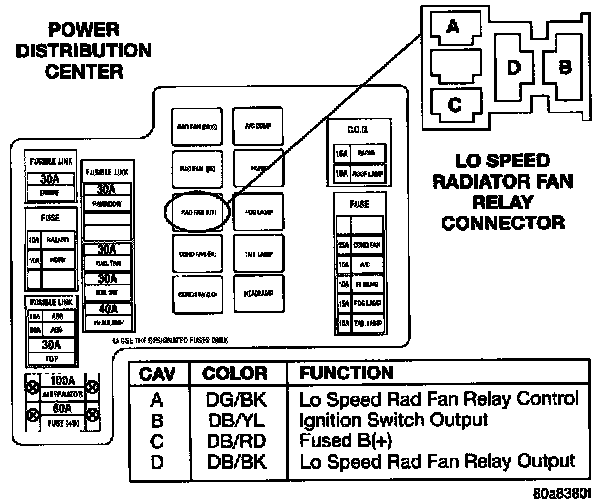 Power Distribution Center, Lo Speed Radiator Fan Relay Connector:
