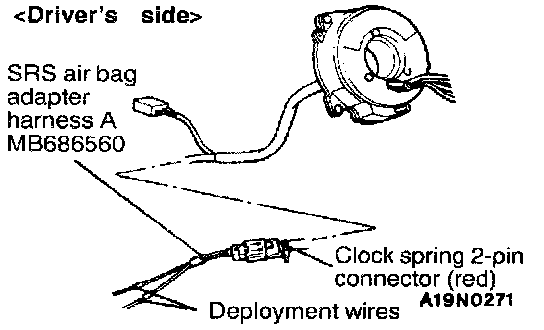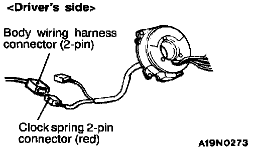 NOTE: If the clock spring connector is disconnected from the body wiring harness, bath electrodes of the clock spring connector will be automatically shorted to prevent unintended deployment of the air bag due to static electricity, etc.