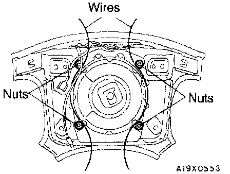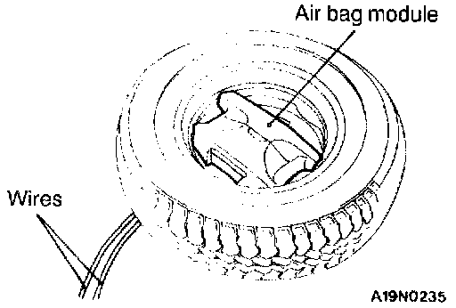 1. Install nuts that are no longer needed to the four bolts on the rear side of the air bag module, and tie on some thick wire to secure to the wheel.