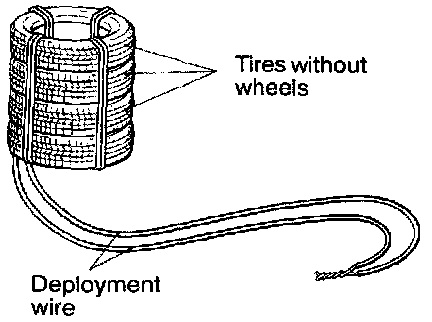 3. Place three old tires, without wheels, on top of the tire secured to the air bag module, and secure all tires together with ropes (4 locations).