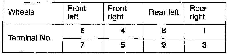 2. Disconnect the ABS-ECU connector, and then use the special tool (inspection harness for connector pin contact pressure) to measure the output voltage at the harness-side connector.