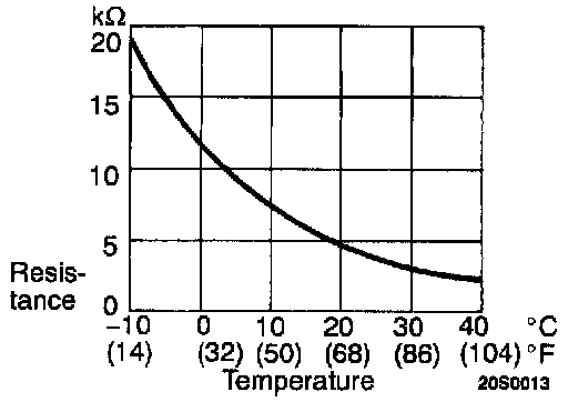 When the resistance value between the sensor terminals is measured under two or more temperature conditions, the resistance value should be close to the values shown in the graph.