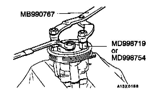 - Use the special tool to secure the pulley, and then remove the pulley mounting nuts.