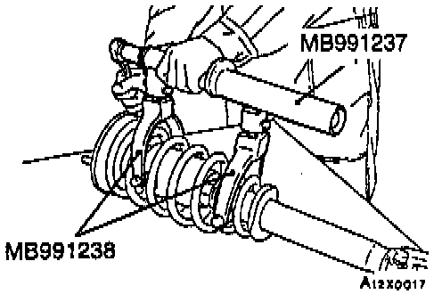 5. Remove the special tools (MB991237, MB991239), and tighten the self-locking nut to the specified torque.