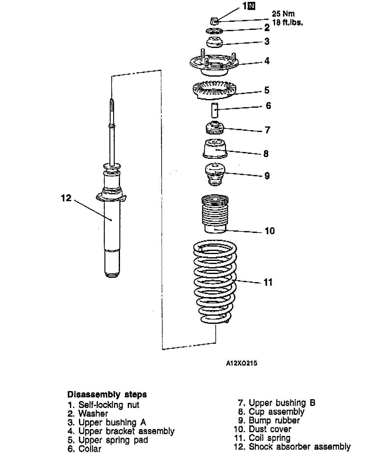 1. Compress the coil spring using the special tools, before removing self-locking nut.