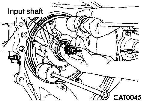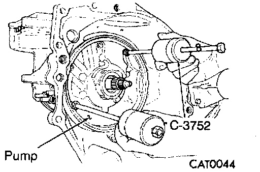 3. Strike the weights of the pullers against the bolt heads of the tools to loosen the pump. "Push in" on input shaft while loosening pump.