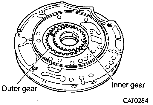 8. Remove the oil pump outer gear and oil pump inner gear from the pump housing. If the gears are to be reused, place mating mark on the gears to ensure that the mounting direction will be correct when the gears are installed.