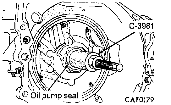 Install new oil pump seal with Drive Handle C-4171 and Seal Installer C-4193.