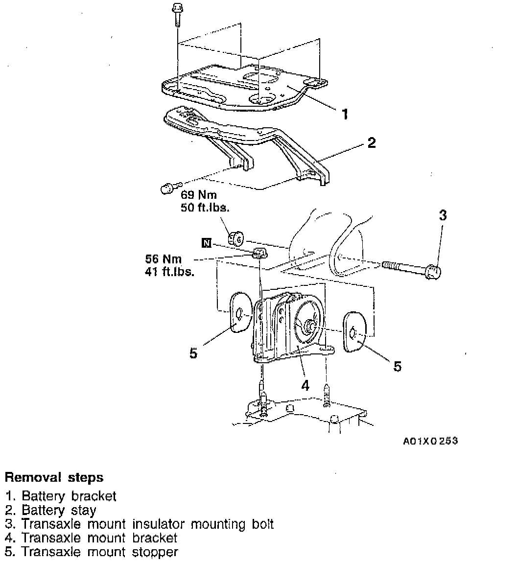 5. Slightly lower the transaxle, and then remove the transaxle mount bracket.