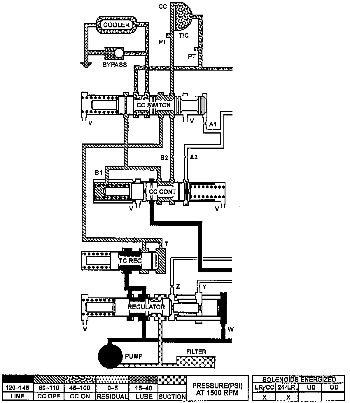Beginning in 1996, the torque converter control valve was modified to delete the function of regulating the flow to the torque converter when the converter clutch is not applied. The valve switches the direction of fluid flow when the converter clutch is applied and vents the release side of the torque converter clutch.