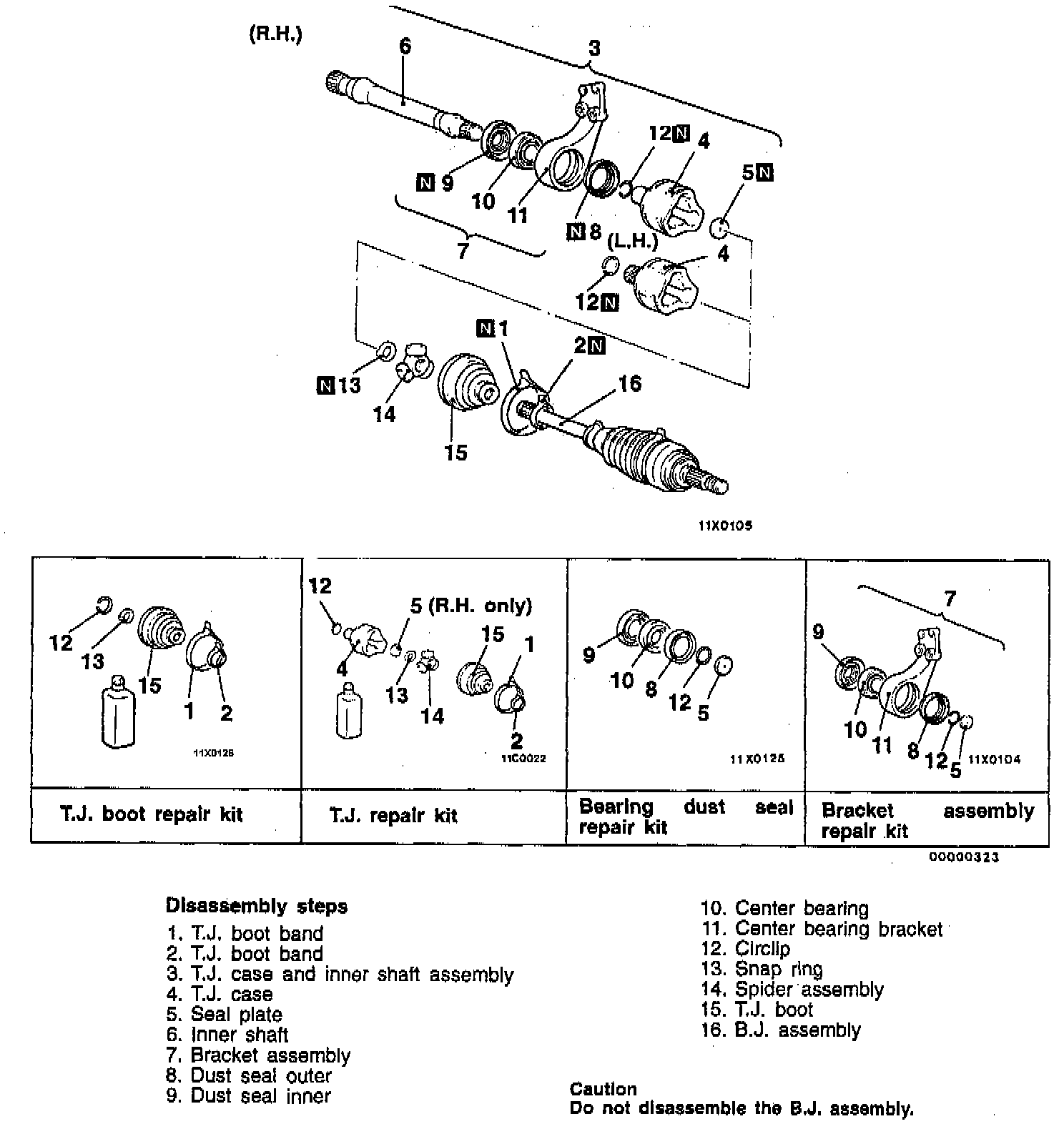 - The drive shaft joint uses special grease. Do not mix old and new or different types of grease.
