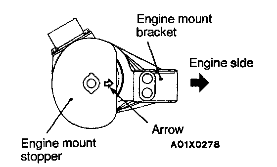 Clamp the engine mount stopper so that the arrow points in the direction as shown in the diagram.