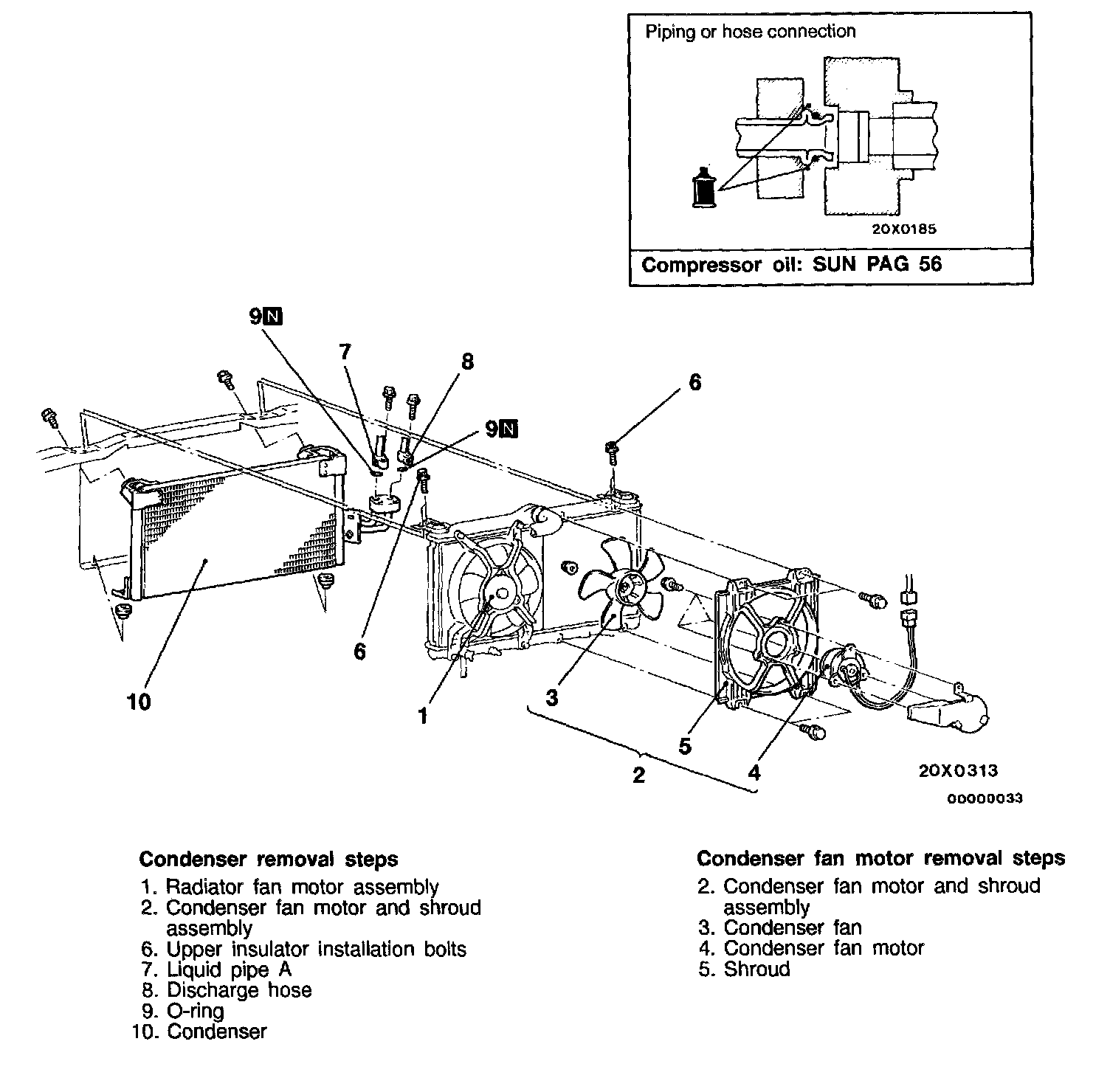 When replacing the condenser with a new one, refill the condenser with a specified amount of compressor oil.