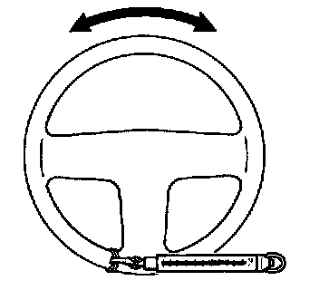 3. Attach a spring scale to the outer circumference of the steering wheel and measure the steering force required to turn the steering wheel from the straight ahead position to the left and right (within a range of 1.5 turns). Also check to be sure that there is no significant fluctuation of the required steering force.