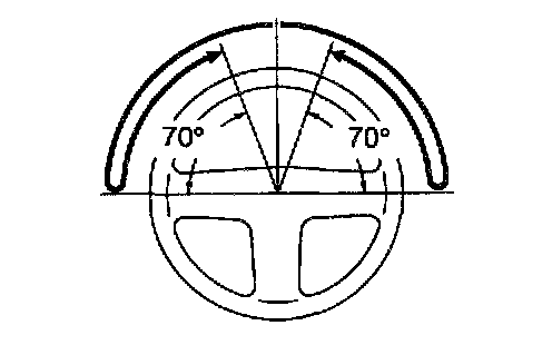 2. At a speed of 20 - 30 km/inch (12 - 19 mph), turn the steering wheel 90°, and release the steering wheel after 1 or 2 seconds. If the steering wheel then returns 70° or more, the return can be judged satisfactory.