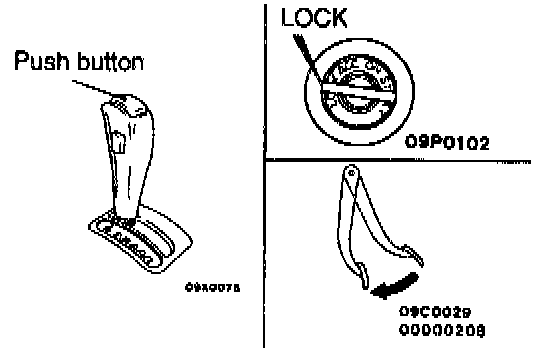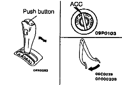 2. Check that, under the following conditions, the selector lever can be moved from the "Up" position to any other position. Press the button a few times and check to be sure that the selector lever moves smoothly.