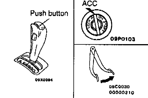 Ignition key position: "LOCK (OFF) ", or removed Brake pedal: Depressed