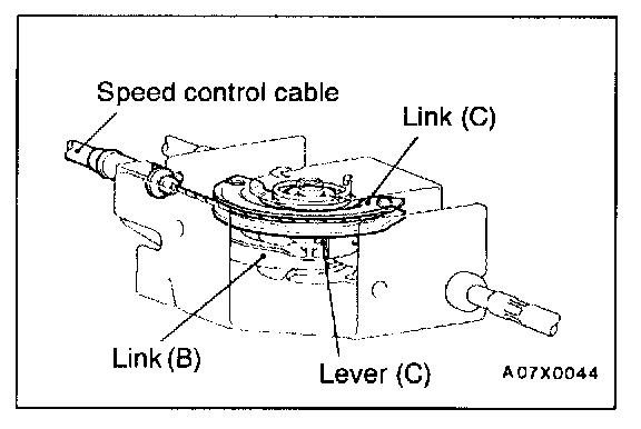 Hold the link C at the position where the lever C touches the link B. Then secure the speed control cable.