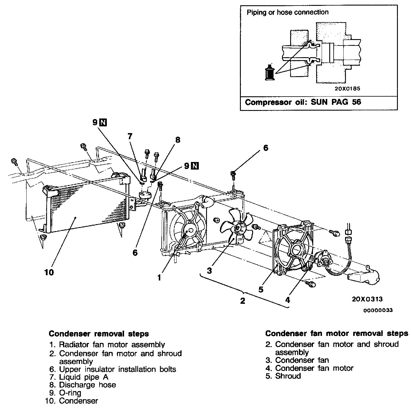 When replacing the condenser with a new one, refill the condenser with a specified amount of compressor oil.