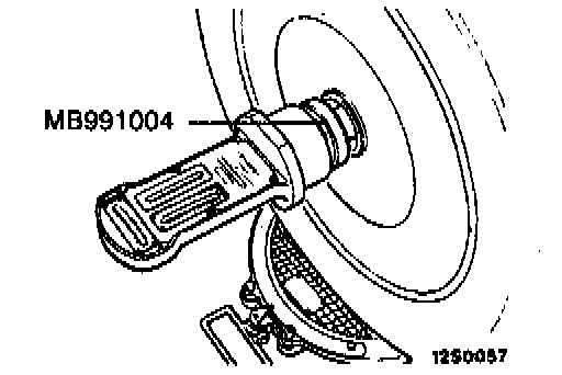 3. For vehicles with aluminum type wheels, attach the camber/caster/kingpin gauge to the drive shaft by using the special tool. Tighten the special tool to the same torque [196 - 255 Nm (142 - 184 ft. lbs.)] as the drive shaft nut.