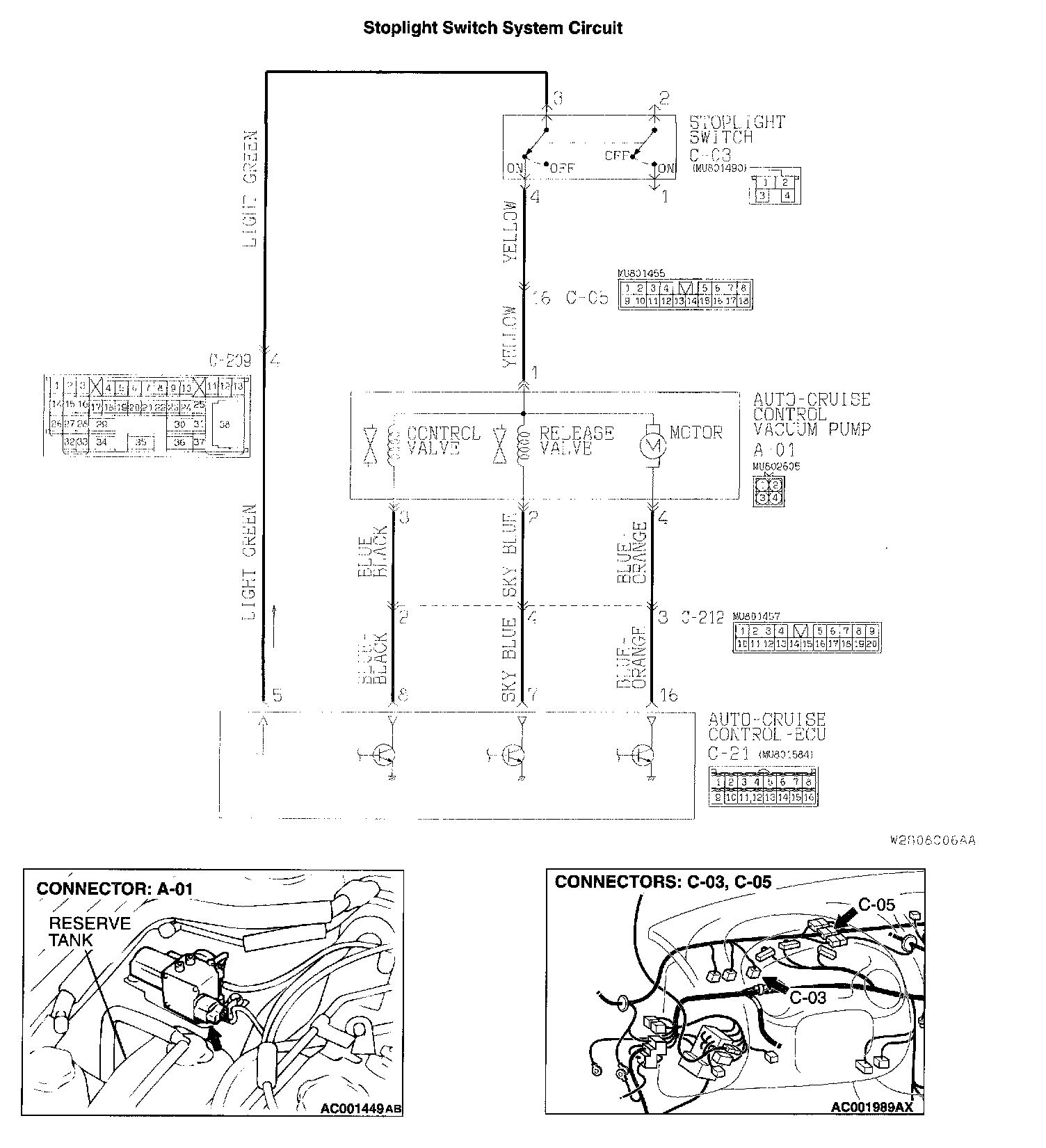 1. Do not disconnect auto-cruise control vacuum pump connector A-01.