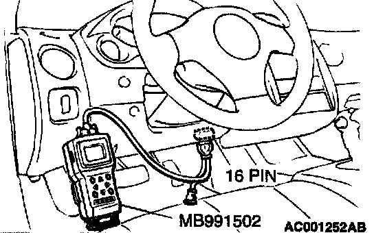 CAUTION: To prevent damage to the scan tool MB991502, always turn the Ignition switch to the lock position before connecting or disconnecting scan tool MB991502.