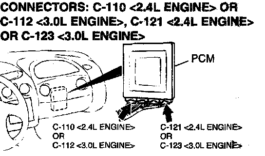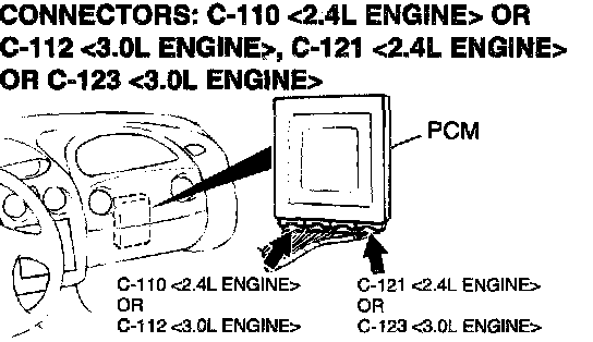 1. Do not disconnect connectors C-110 <2.4L Engine> or C112 <3.0L Engine> and C-121 <2.4L Engine> or C-123 <3.0L Engine>.