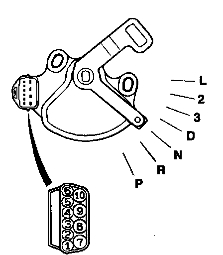 Check for continuity between terminals for selector 'position.