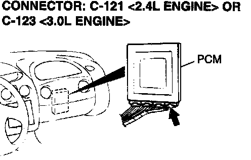 1. Do not disconnect connector C-121 <2.4L Engine> or C123 <3.0L Engine>.