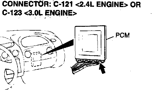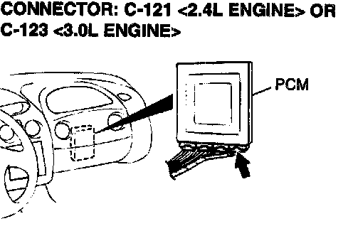 1. Do not disconnect connector C-121 <2.4L Engine> or C- 123 <3.0L Engine>.