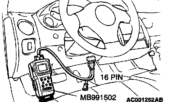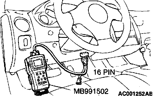 1. Connect scan tool MB991502 to the data link connector.