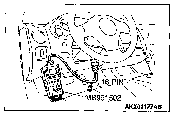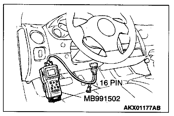 1. Connect scan tool MB991502 to the data link connector.