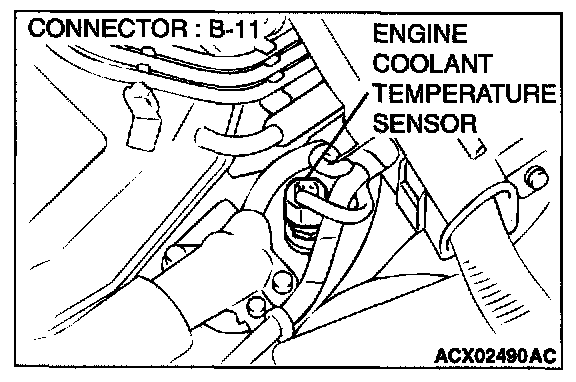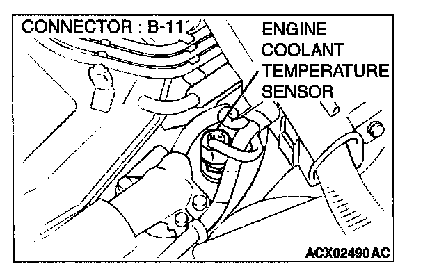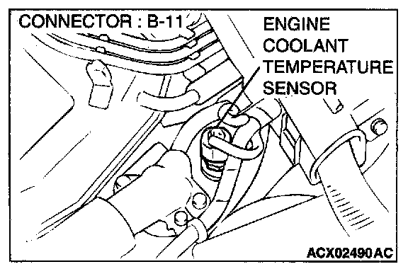 1. Disconnect the engine coolant temperature sensor connector B-11.