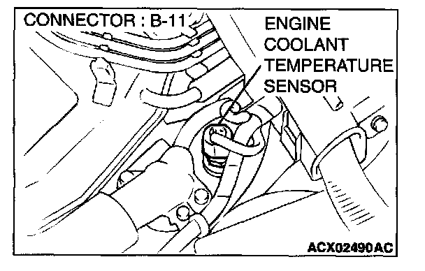 1. Disconnect the engine coolant temperature sensor connector B-11.