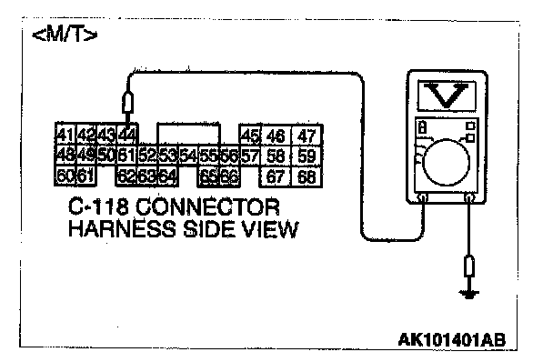 4. Measure the voltage between terminal 44 and ground by backprobing.