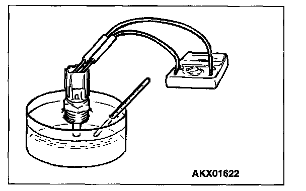 3. With the temperature sensing portion of engine coolant temperature sensor immersed in hot water, check resistance.