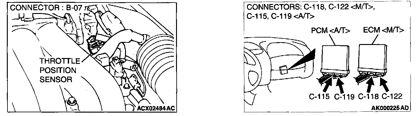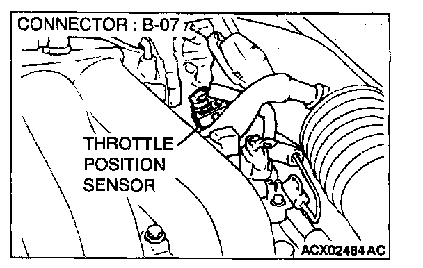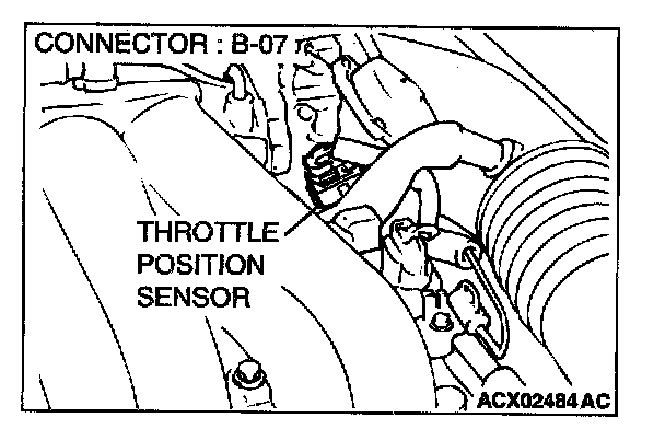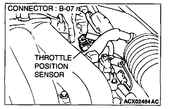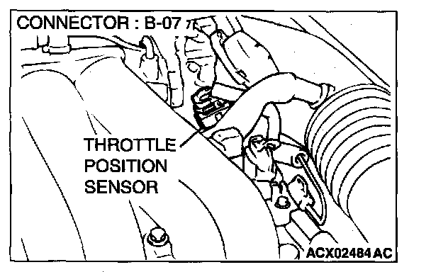 STEP 2. Check connector B-07 at throttle position sensor for damage.