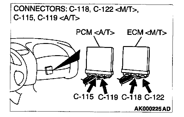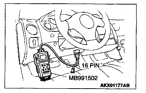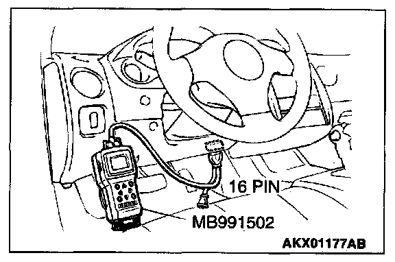 CAUTION: To prevent damage to scan tool MB991502, always turn the ignition switch to the "LOCK" (OFF) position before connecting or disconnecting scan tool MB991502.
