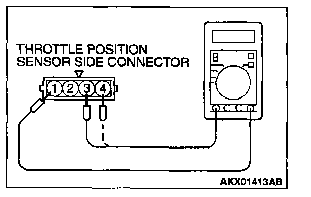 3. Measure resistance between the throttle position sensor side connector terminal 1 and 3.