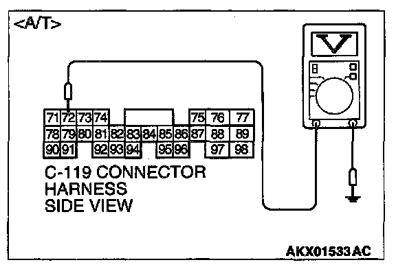 3. Set scan tool MB991502 to the data reading mode for item 39, Heated Oxygen Sensor Bank 1, Sensor 1 (right front).